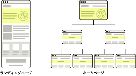 ランディングページと一般的なホームページとの最大の違いは、ページ構成にあります。ホームページはメニューボタンをクリックして他のページへ遷移する形式が多いのに対し、ランディングページはスクロールのみで完結します。