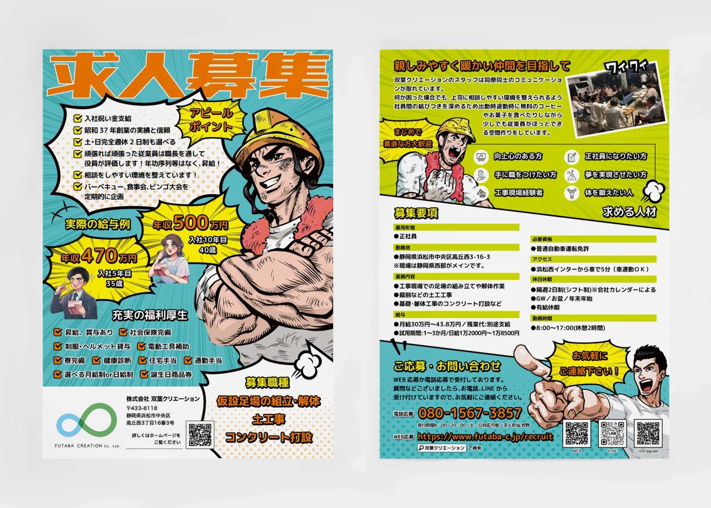 浜松市高丘の株式会社双葉クリエーション様の求人チラシを制作いたしました。